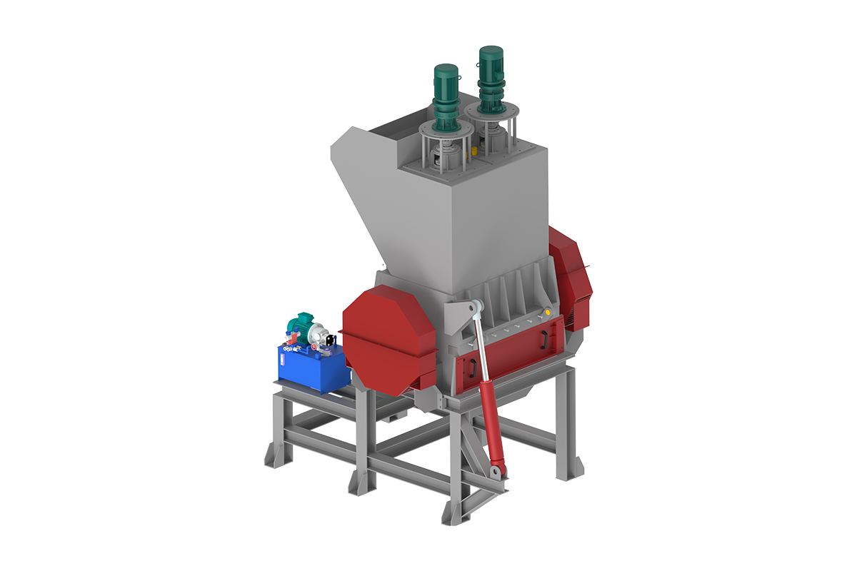 A double-shaft self-pressurizing plastic shredder generally refers to a Double Shaft Plastic Crusher Machine. Instead of cutting with high-speed rotating blades, it crushes plastic materials using low-speed, high-torque blades. The following is a detailed introduction to it: